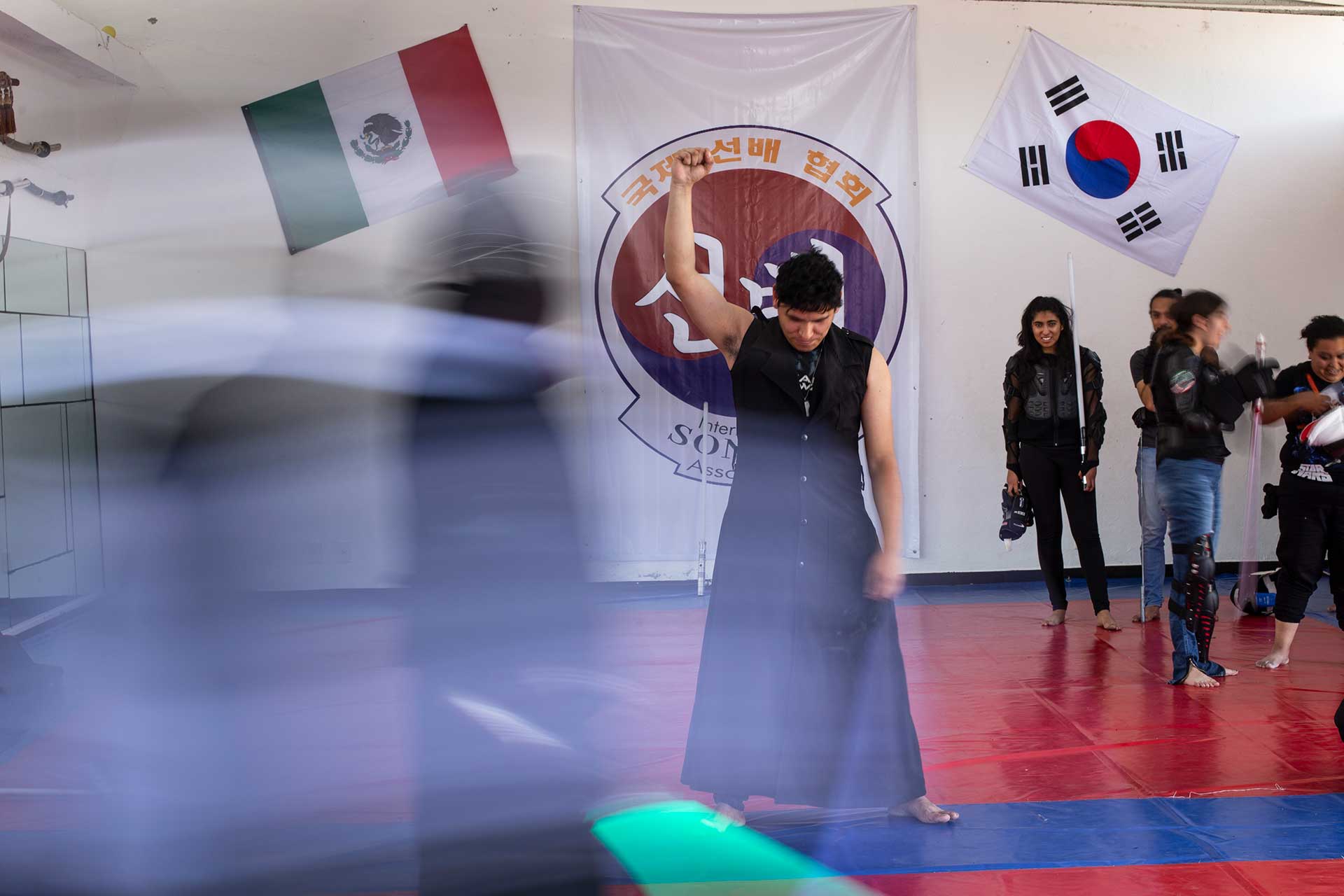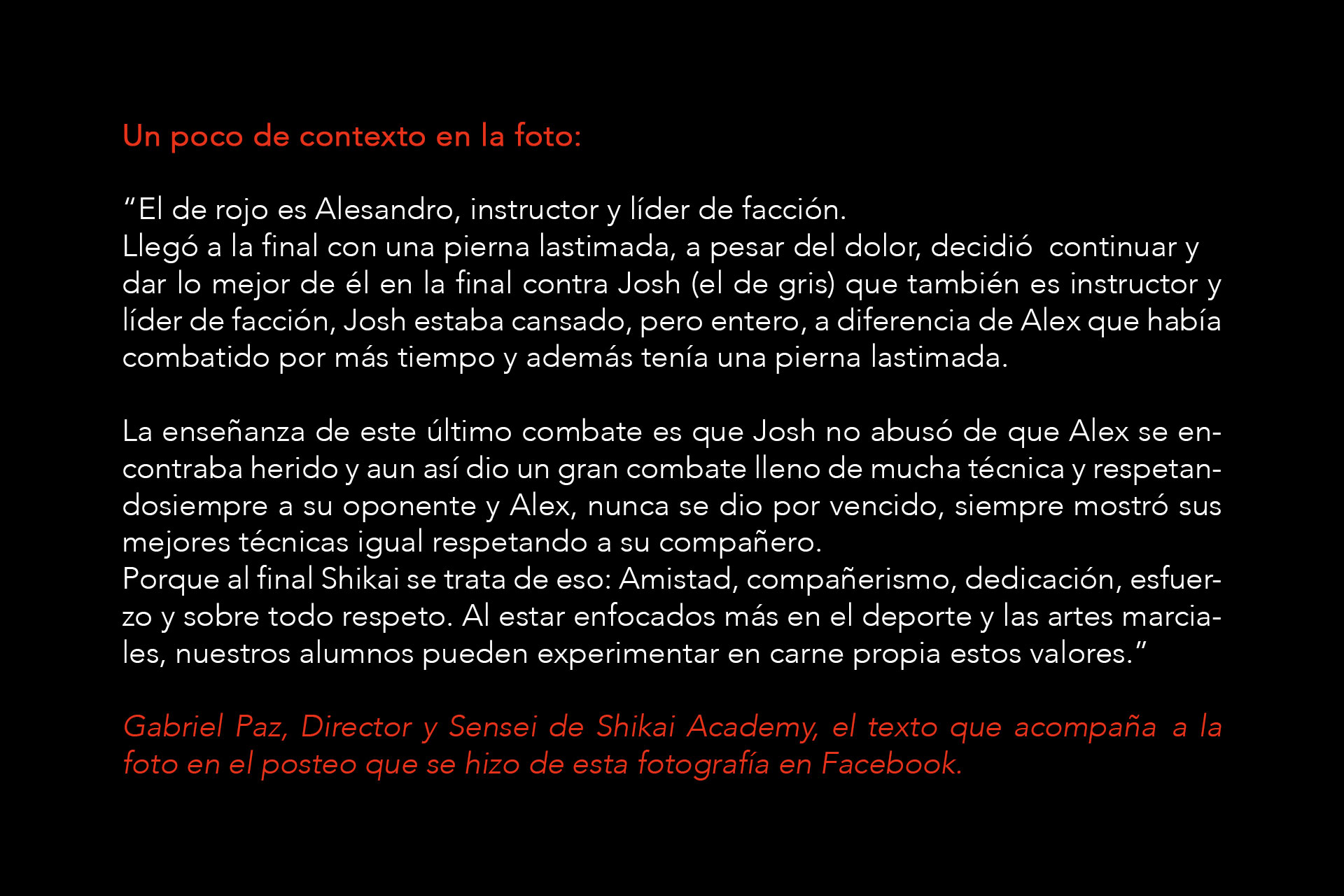 Foto documental. Trabajo realizado como resultado de la titulación de Maestría en Artes Visuales y Fotografía en Centro ADM. Al ser practicante no activo de aikido, mi conexión con el proyecto radica en la empatía con practicantes de este nuevo deporte, que ha tomado mayor fuerza en los últimos años en varios países por sus bases fundamentadas en las artes marciales y su toque lúdico. A través del movimiento y la luz, practicantes logran un mayor autoconocimiento y desarrollo personal. mi interés radica en que existen pocas prácticas de este tipo que promuevan el bienestar personal y social de manera integral.