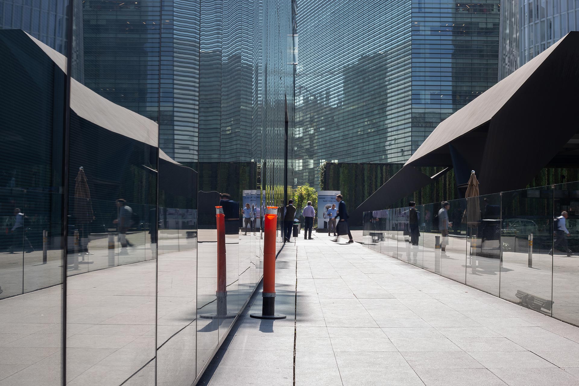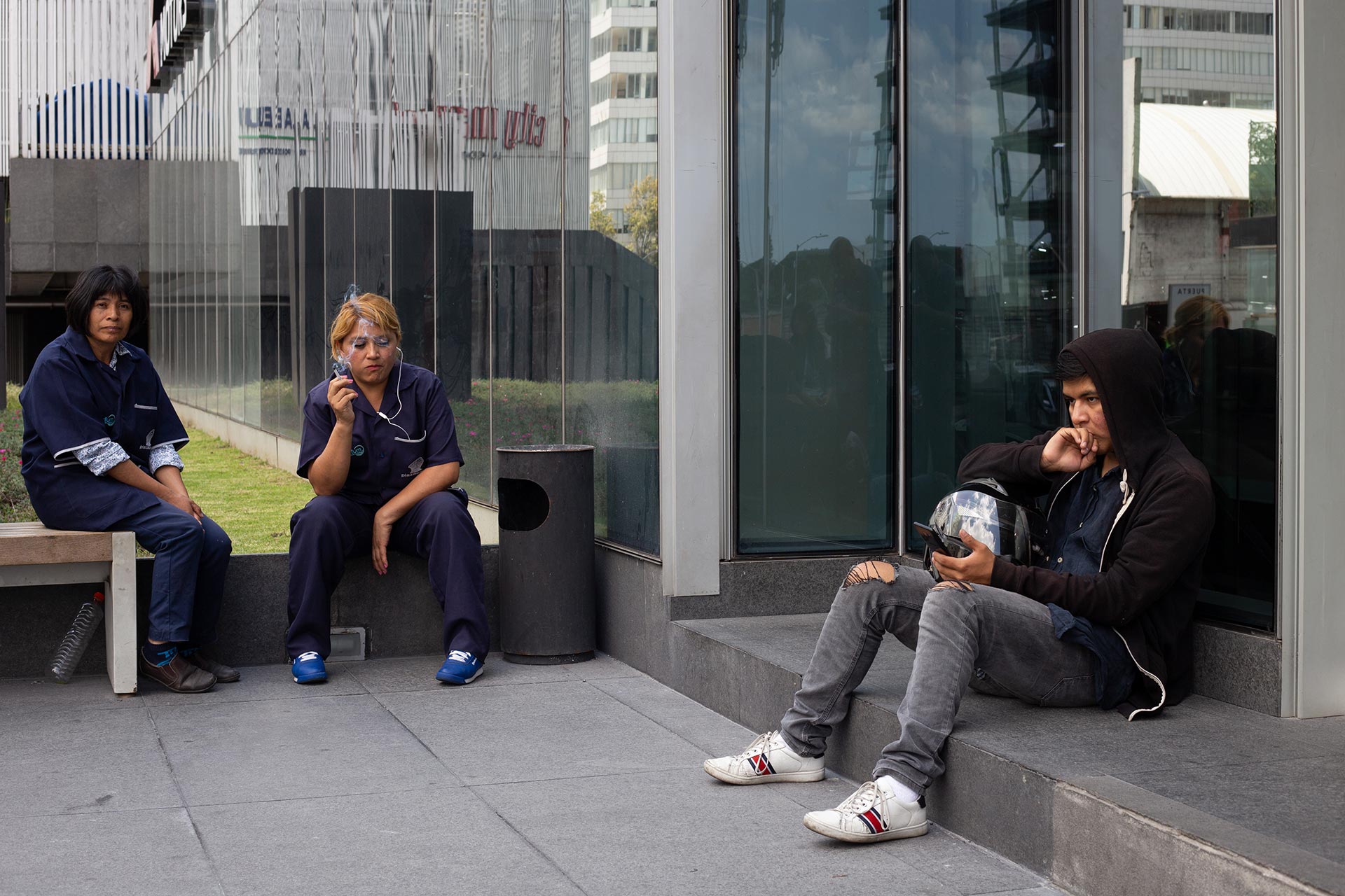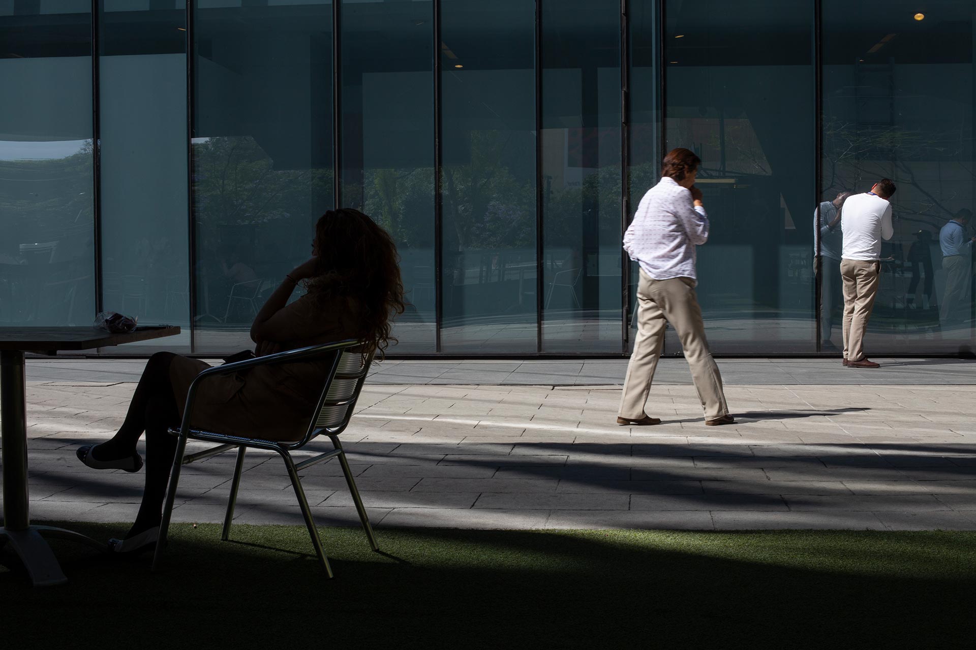 En un ejercicio de diario visual que comenzó en el 2018, comencé de manera más enfocada a registrar mi entorno de trabajo, ubicado en Plaza Carso, empecé sin capturar, apreciando el entorno, las situaciones, el camino de los reflejos de luz, conociendo, explorando y delimitando mi acceso al espacio, para después tratar de hacerme imperceptible y lograr transmitir todo aquello que llamaba mi atención; conglomeración de personas, privilegios contratantes, significación, corporativismo, tecnocracia, clasismo, sobrepoblación, diversidad cultural, poder, proletariado, jornadas laborales, tiempos libres, consumismo, capitalismo, monotonía, aspiraciones, acumulación de riqueza, austeridad, ensueños. Lamentablemente la pandemia se atravesó en un punto en el cual me encontraba en buen ritmo realizando más imágenes y la nueva anormalidad lo único que provocó fue replantear e integrar lo que sigue sucediendo en este espacio.